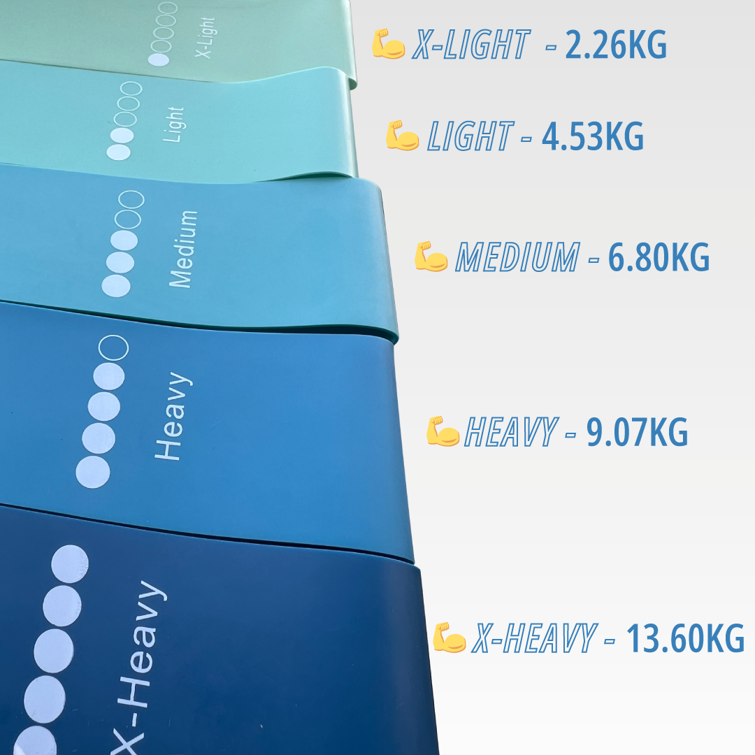 * Cintas de Resistencia Ajustable: Nuestro kit incluye un conjunto de 5 cintas de resistencia circulares, cada una con un nivel de resistencia diferente. Cada color representa un nivel de resistencia específico, que va desde X-Light (muy ligero) hasta X-Heavy (muy fuerte). Estas cintas están fabricadas con material 100% látex natural, lo que garantiza elasticidad, durabilidad y resistencia. Cada cinta mide 30 cm en estado de reposo y puede estirarse hasta 80 cm, tienen 5 cm de ancho, lo que te permite personalizar tu entrenamiento y aumentar gradualmente la intensidad a medida que te vuelvas más fuerte